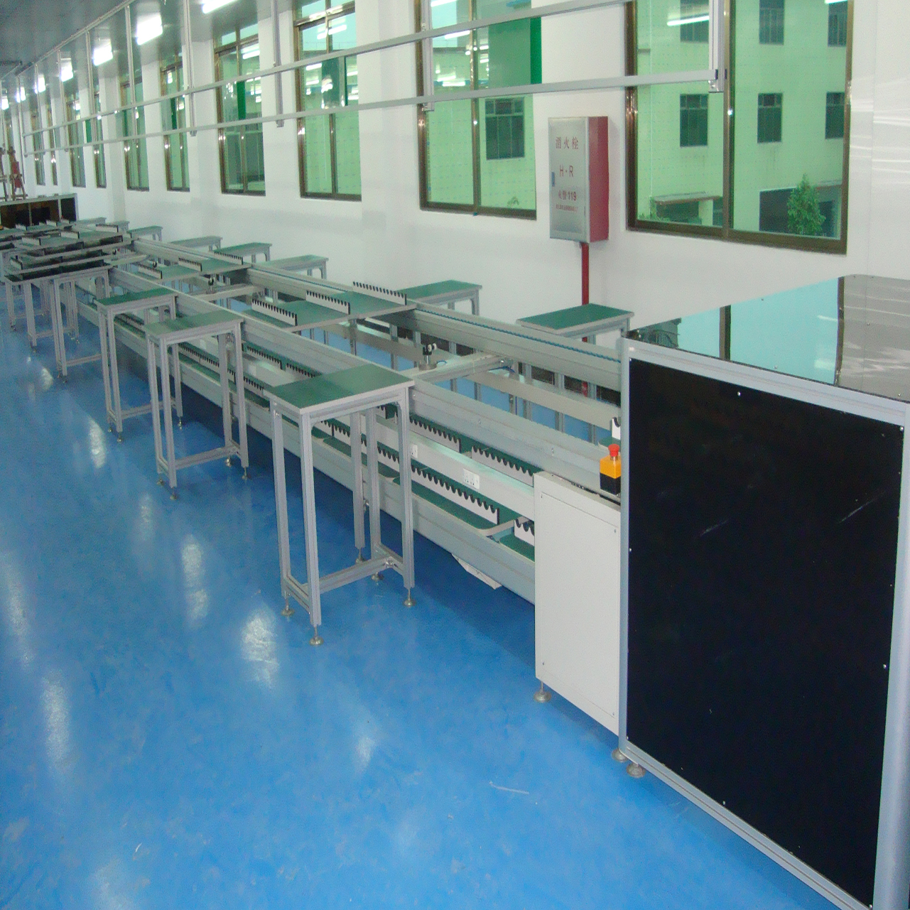 | 1.支 架:采用50×50mm×2.0mm铝材制作,每间距2米设一个支架,防震脚杯为M16×90mm 2.导 轨:采用118×100×2.5mm专用铝材 3.倍速链:采用(苏州产)三倍速差速链条 4.马达:晟邦2HP连体马达,台达变频器,速度每分钟1-5米可调 5.灯通:采用25×60×1.2mm铝通 6.风批铝材:采用U型25*30,厚度为2mm,每米配置一套风批滑轮 7.工艺卡铝材:采用H型15*30,厚度为2mm,每米配置一套工艺卡板(透明亚克力+绿色底板) 8.气管:采用3/4镀锌水管,每米配置一套快速接嘴,下层每个工位配置一套气源供阻挡器 (每条线配置一套 亚德克牌油水分离器) 9.阻挡器:采用亚德客品牌,每条线共配10套,其中两个控制阻挡器,一个卧式阻挡器 10.照明:采用LED单支防尘灯支架,全线满布 11.线槽插座:采用40*80铝通制作,每米配置一套双位万能插座; 12、工具挂扁:采用&3.0mm铝扁, 13、工装板:采用&25mm优质夹板制作,面贴绿色防静电胶皮,底部贴灰色防火板,四面包 边, 两端开阻挡器缺口,规格为:L800×W600×H28mm,每条线配置20块 14、提升机:支架采用40×40×2mm方通焊接制作,表面喷塑处理(颜色为电脑白), 气缸采用 亚德客, 小车马达采用欧特马达,小车皮带采用T型防滑皮带,提升机封板采用茶色有机玻璃板 15.控制系统:全线采用信捷PLC控制,电器采用德力西,电线采用盛华, 行程开关采用欧姆龙,急停采用双科, 16.颜 色:线体除外购件保持原色外,所有钢材表面喷塑处理,颜色为电脑白 |